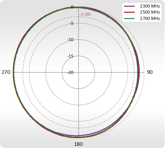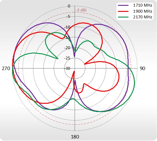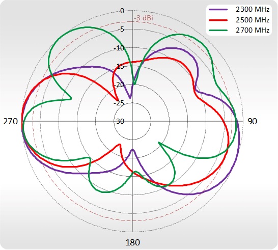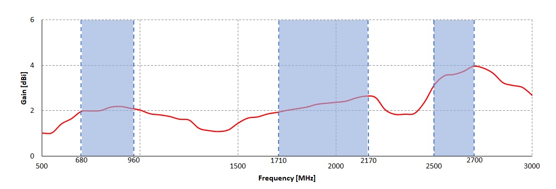 | Gain | 0.694 - 0.96 GHz : 2 dBi 1.7 - 2.2 GHz : 2 dBi 2.5 - 2.7 GHz : 4 dBi |