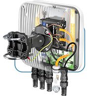 Outdoor CCTV dual SIM LTE PoE gateway with embedded PoE switch for CCTV cameras (RUT950 LTE router not included).
