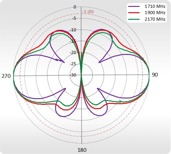 | Gain | 0.694 - 0.96 GHz : 2 dBi 1.7 - 2.2 GHz : 2 dBi 2.2 - 2.7 GHz : 4 dBi |