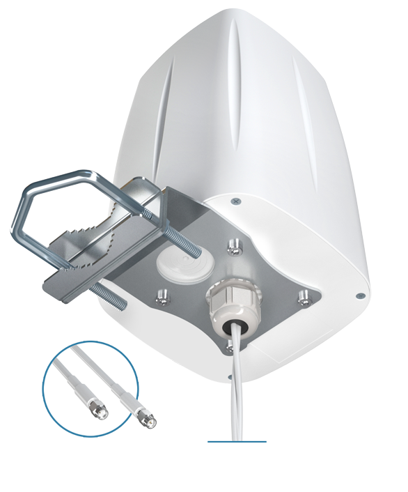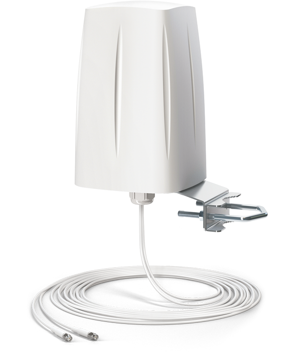 QuOmni LTE omnidirectional MIMO 2x2 LTE antenna is working in Vertical polarization, it´s desired for LTE/3G/2G connections. The antenna can be used for the most popular LTE bands (e.g. 3,7,20), frequencies 694-2700 MHz. That antenna is predicted to be installed on the buildings (on the pole or on the wall) as the client antenna or on the moving points like trains, buses, lorries, yachts, boats to receive Internet by LTE/3G. It’s compatible with Teltonika: RUT240, RUT900, RUT950, RUT955, RUTX09, RUTX11 and other MIMO 2x2 LTE/3G/2G modems and routers.