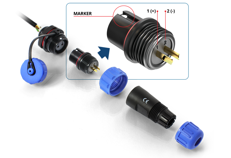 Outdoor power socket & plug 2 PIN set for all cases where the User doesn’t want to use Passive PoE powering feature in all QuWireless antennas.