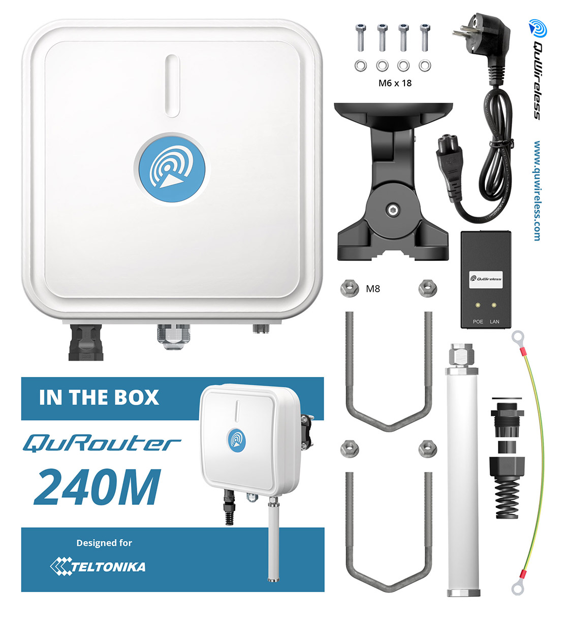 QuRouter 240M is a cost-effective and powerful outdoor industrial LTE Cat 4 & Wi-Fi router for professional application. Integrated with high power LTE MIMO 2x2 antenna and Wi-Fi omnidirectional antenna. The mobile router delivers high performance for mission-critical cellular communication in harsh and hazardous environments where a wide operating temperature is required. Equipped with an external SIM holder.