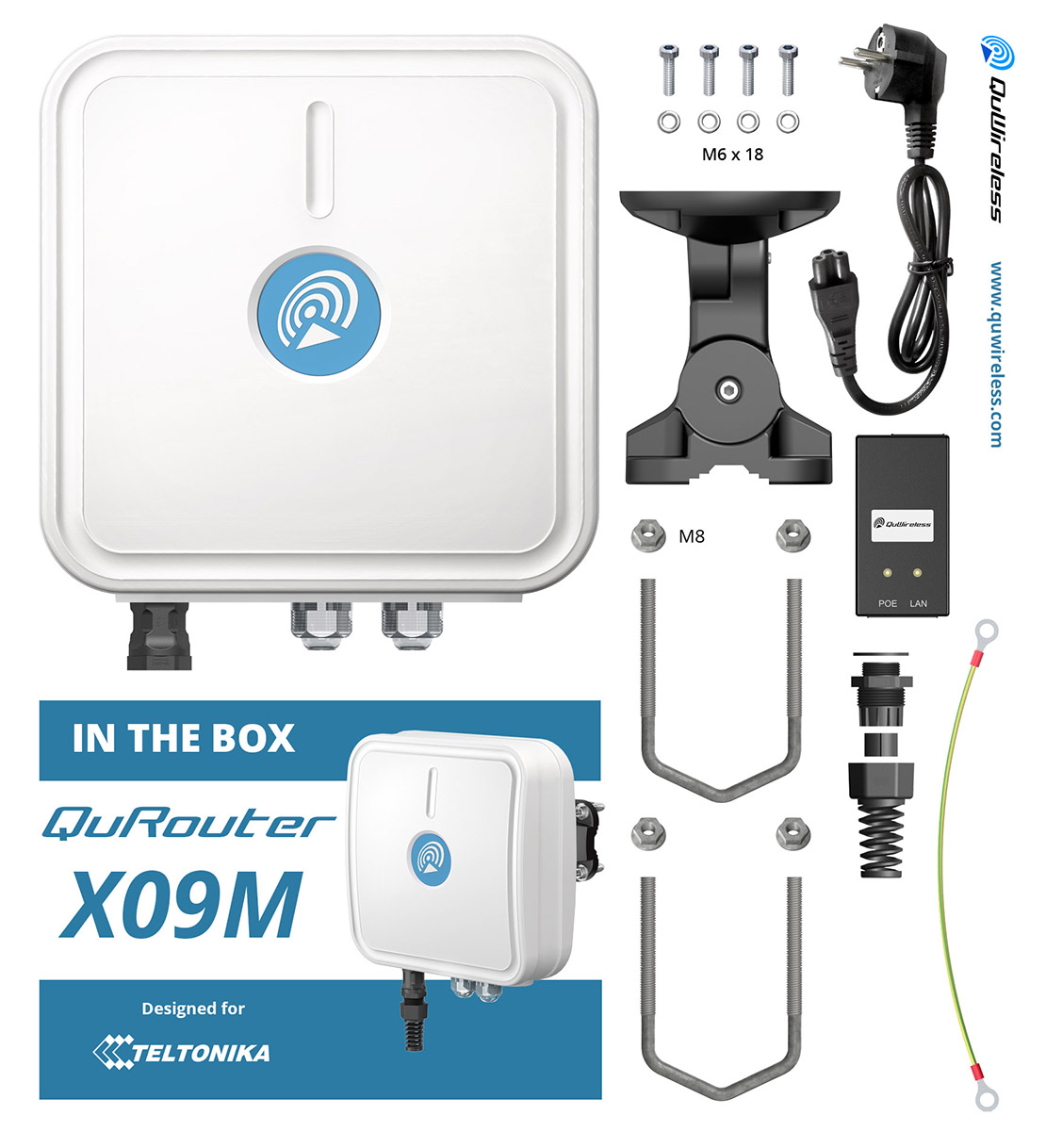 QuRouter X09M is a robust outdoor LTE Cat 6 router with embedded GNSS/GPS module. Equipped with Dual-SIM with 4G connectivity redundancy failover. Integrated with high power directional LTE MIMO 2x2 antenna and GPS antenna. This device is perfect for advanced Industrial and Enterprise applications. Quad Core ARM Cortex A7 717 MHz CPU and 256 MBytes DDR3 RAM assures smooth VPN data acquisition.