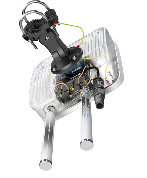 Integrated outdoor multi-band high power LTE directional antenna + outdoor Wi-Fi omni antenna + GPS antenna + place to install Teltonika RUT956 or RUT955 (All-in-one)