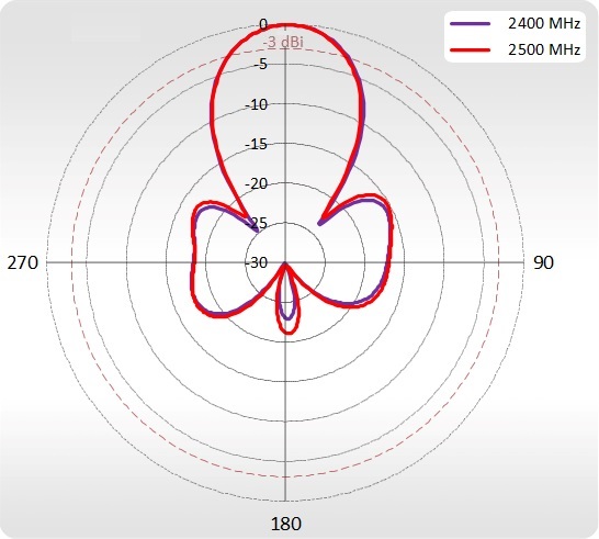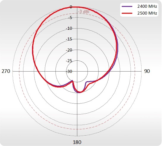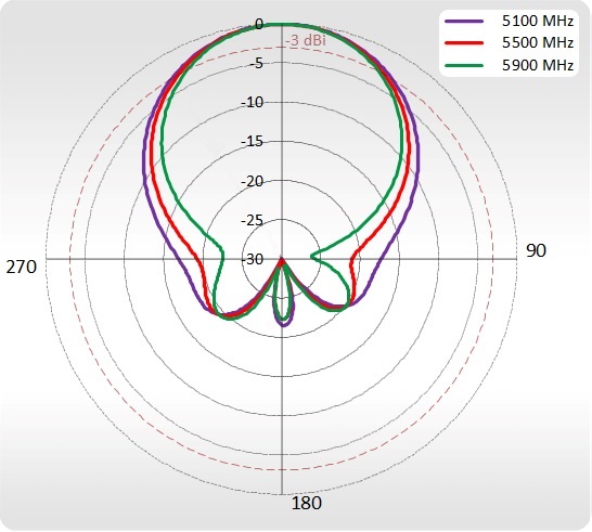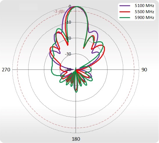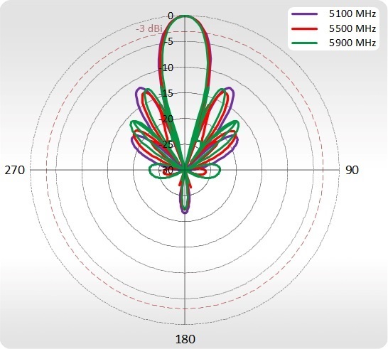 | Beamwidth | 2.40 - 2.50 GHz - 90°/30° ±5° 5.10 - 5.90 GHz - 90°/16° ±5° |