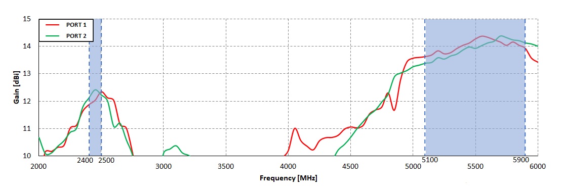 | Gain | 2.40 - 2.50 GHz : 12 dBi 5.10 - 5.90 GHz : 14 dBi |
