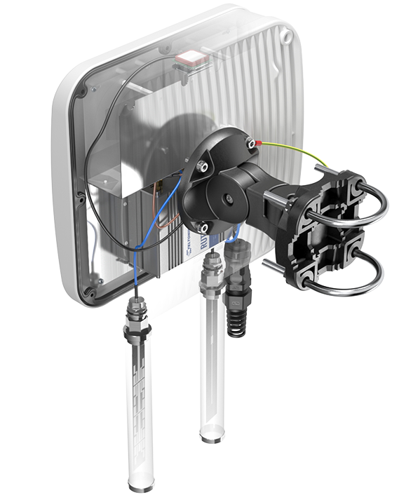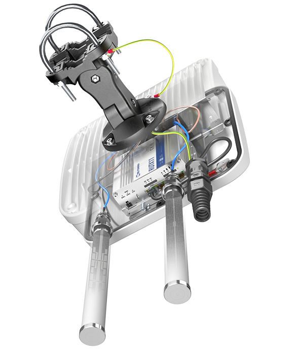 Integrated outdoor LTE high power directional antenna + outdoor Wi-Fi dual band 2.4 & 5 GHz omni antenna + Bluetooth antenna + GPS antenna + place to install Teltonika RUTX11 (All-in-one)