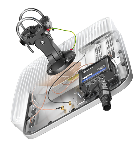 Integrated outdoor multi band eXtra Range LTE directional antenna + Wi-Fi dual band 2.4 & 5 GHz omni antenna + Bluetooth antenna + GPS antenna + place to install Teltonika RUT200/240/241/901/950/951/955/956/X09/X11 (All-in-one)