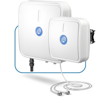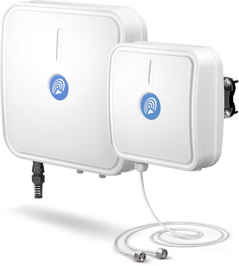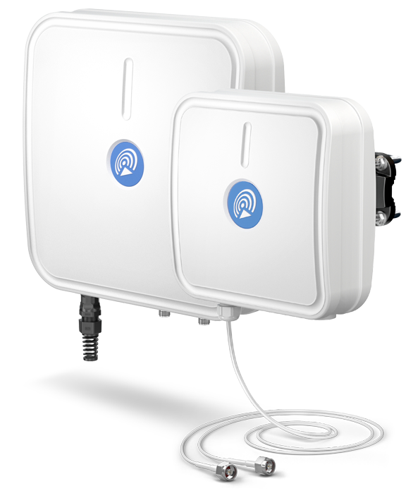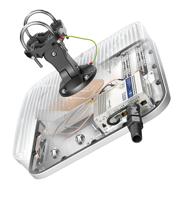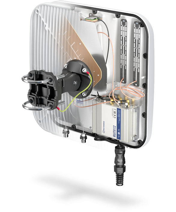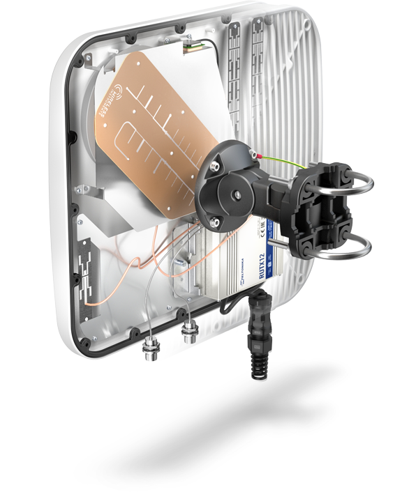 Set of two separate eXtra Range LTE directional antennas for bi-directional connection to two different LTE base stations. The main antenna has integrated also dualband Wi-Fi, GPS, Bluetooth antennas and space to install Teltonika RUTX12. The second antenna is only directional LTE XR antenna