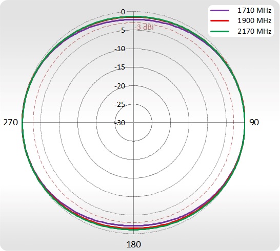| Gain | 0.694 - 0.96 GHz : 2 dBi 1.7 - 2.2 GHz : 2 dBi 2.2 - 2.7 GHz : 4 dBi |