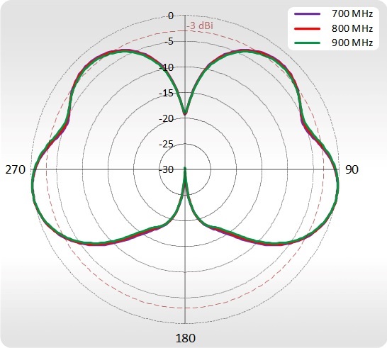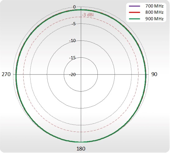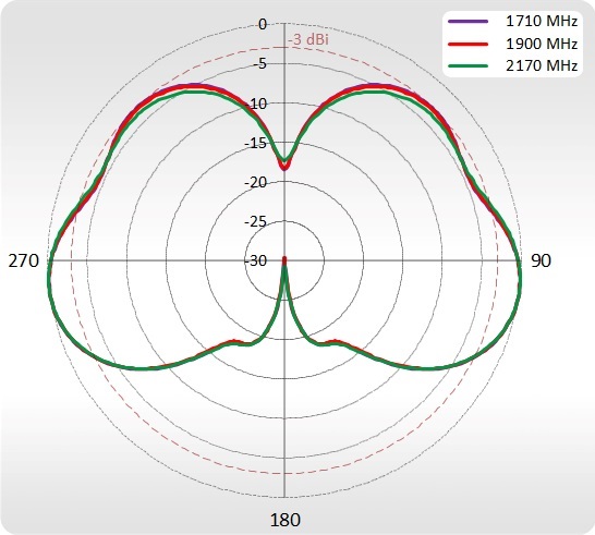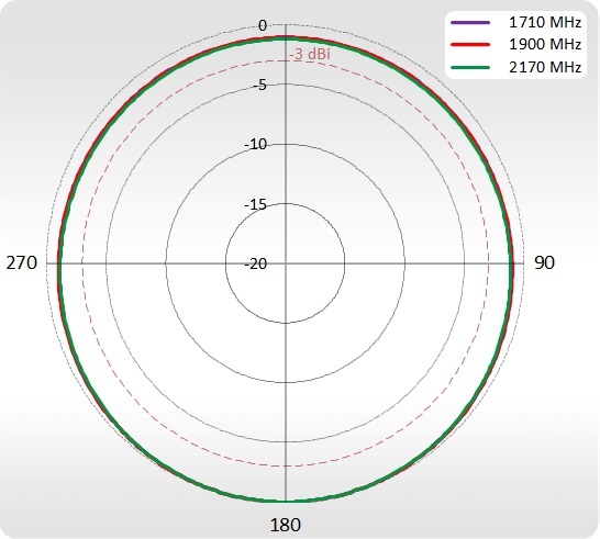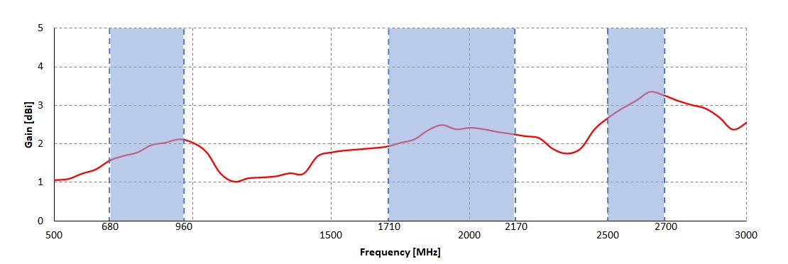 | Gain | 0.694 - 0.96 GHz : 2 dBi 1.7 - 2.2 GHz : 2 dBi 2.5 - 2.7 GHz : 3 dBi |